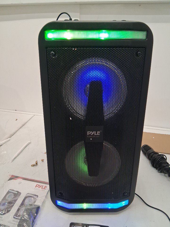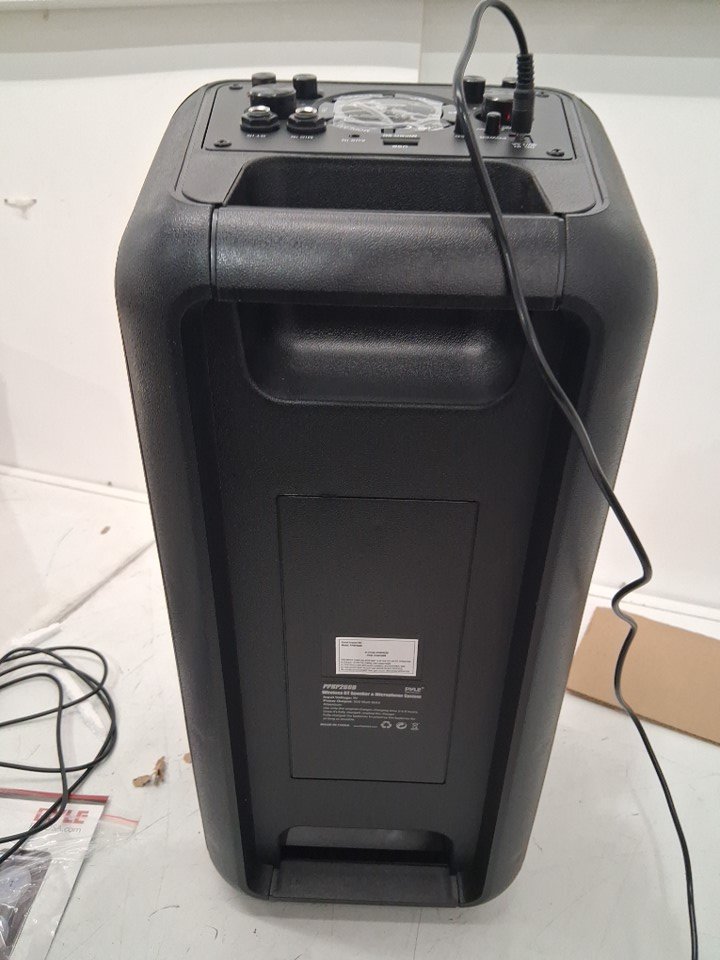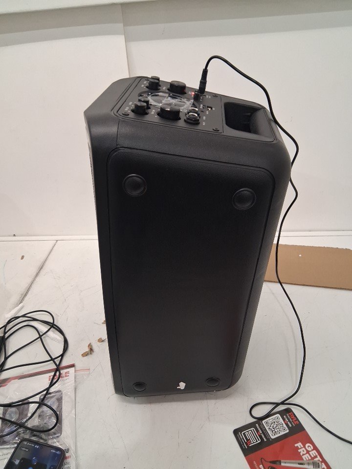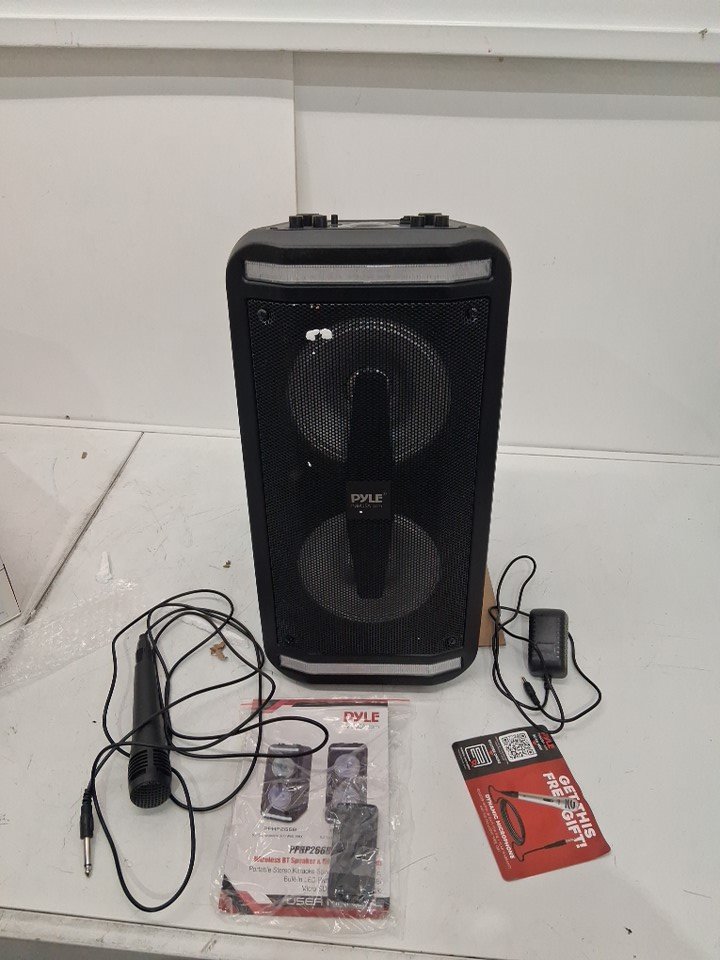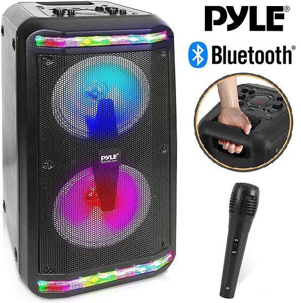 Pyle Bluetooth Speaker & Microphone System - Portable Stereo Karaoke Speaker with Wired Mic, Built-in LED Party Lights - black (model: PPHP266B)