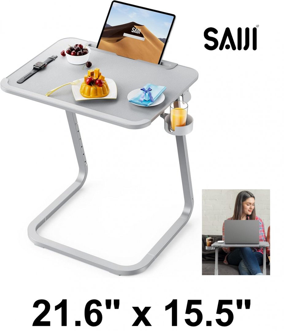 SAIJI laptop table for bed Adjustable Bedside Standing Desk - 21.6" x 15.5" - Grey (Model: F2)