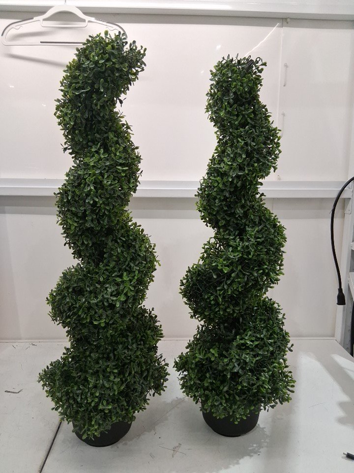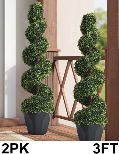 2PK ARTIFICIAL BOXWOOD SPIRAL TOPIARY PLANT - 3ft - green/black