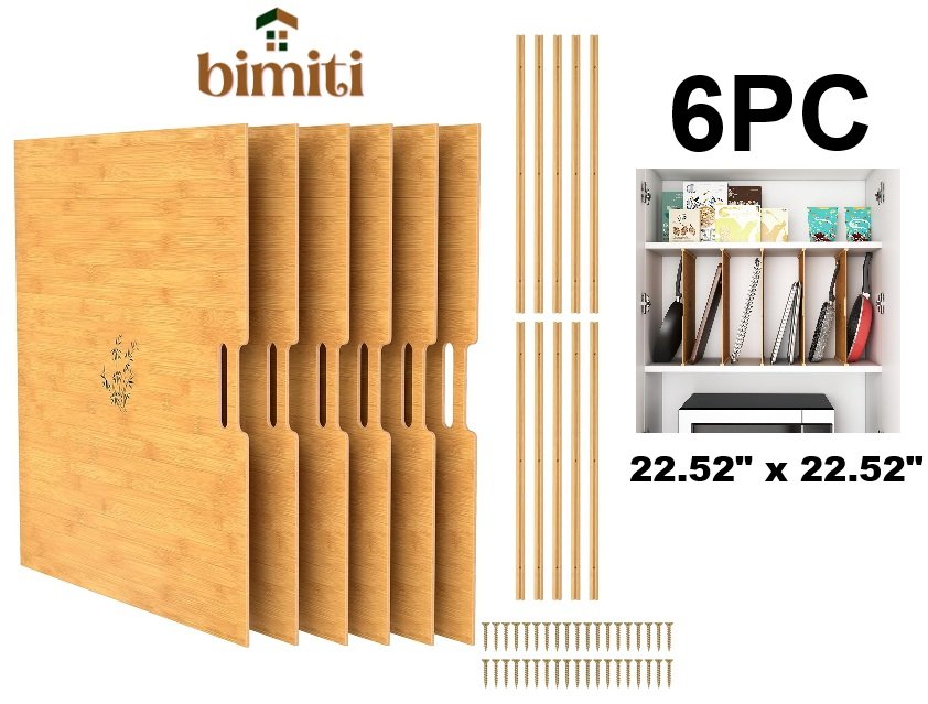 6pc bimiti Wood Cabinet Dividers with Slideways & Screws - 22.52" x 22.52" - light wood - (model:CAW24-34192)