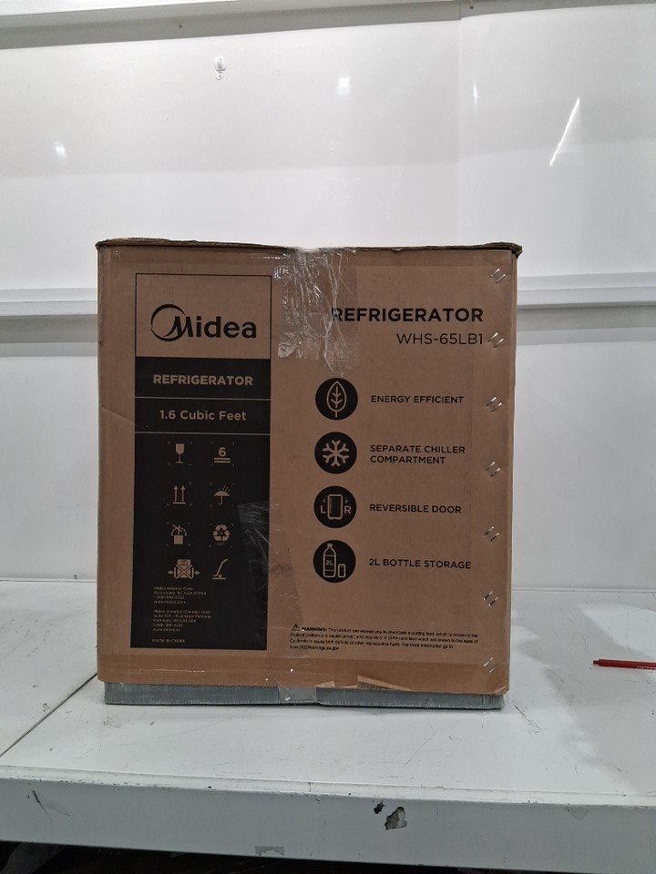 MIDEA COMPACT 1.6 CU.FT REVERSIBLE SINGLE DOOR REFRIGERATOR/FREEZER - BLACK (MODEL: WHS-65LB1)