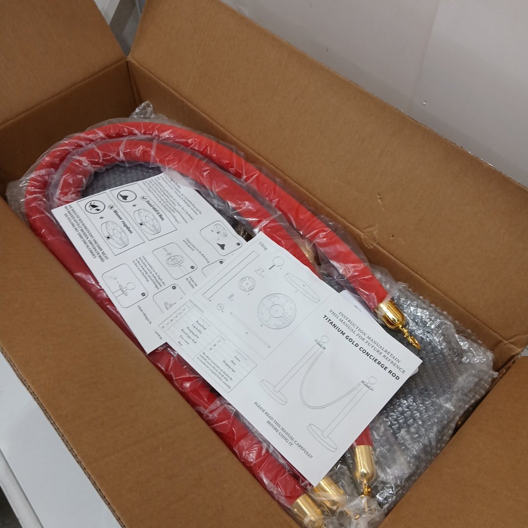 4PK GARVEE Metal Concierge Service Welcome Post, Line Divider Stanchion with Rope - 30" - RED /GOLD