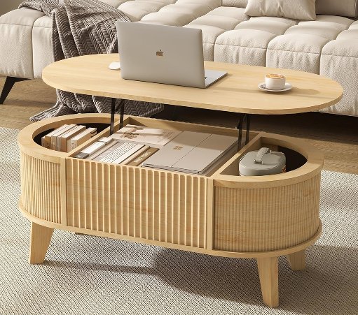 LYNCOHOME Modern Oval Fluted Lift Top Coffee Table with Storage - natural (Model: LHCF159-NA)