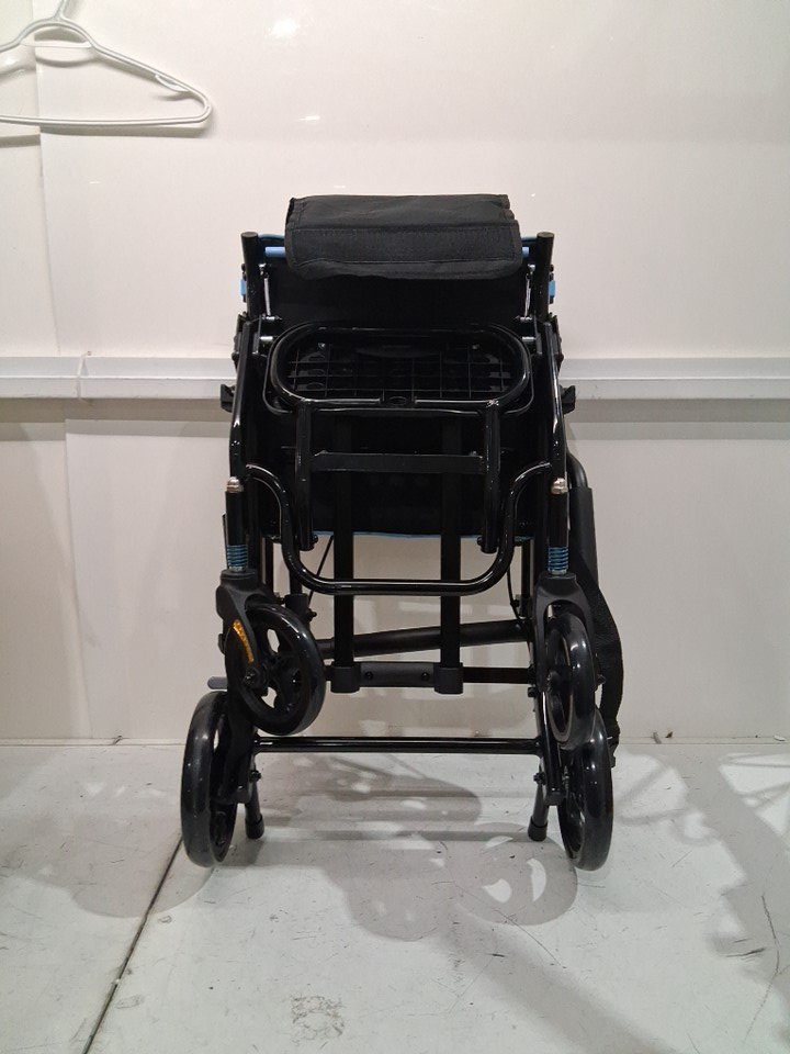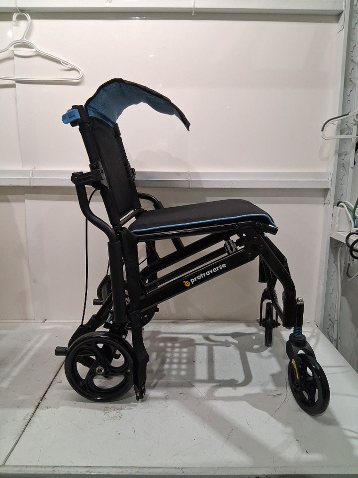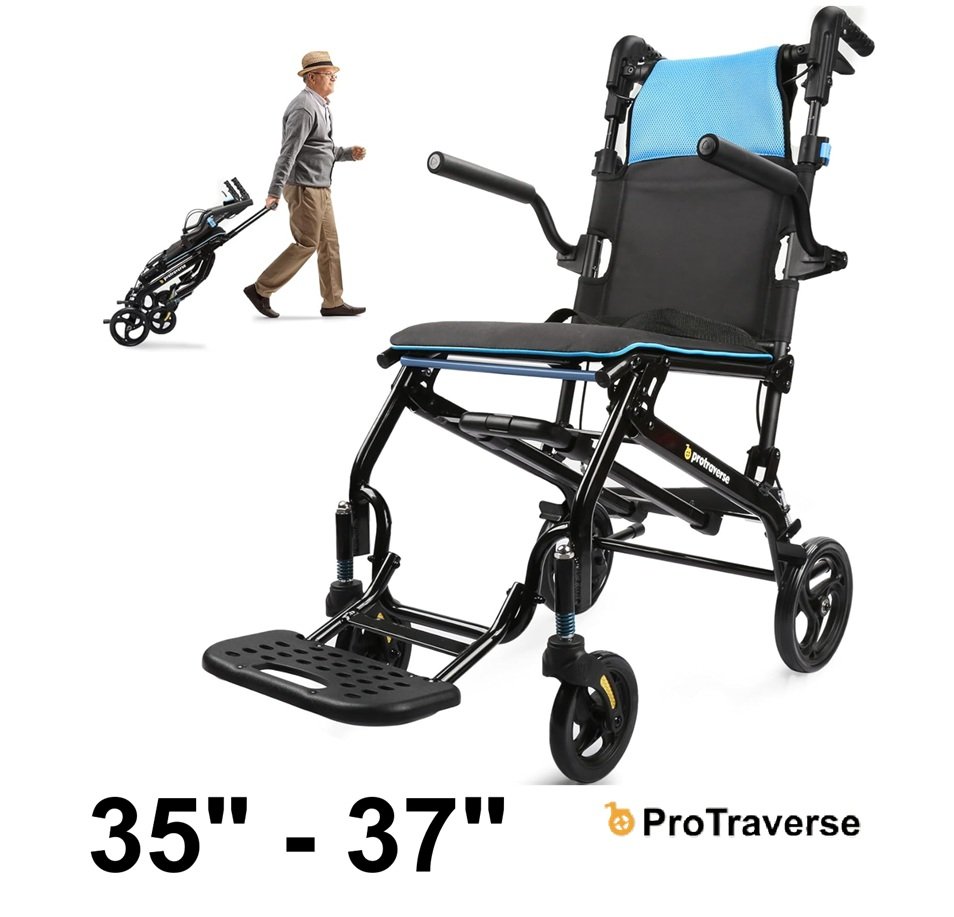 ProTraverse Ultra-Lightweight foldable & Portable Telescopic Handled Wheelchairs - 35" - 37" - black/blue (model: ‎P-LTW0518BU-FBA)