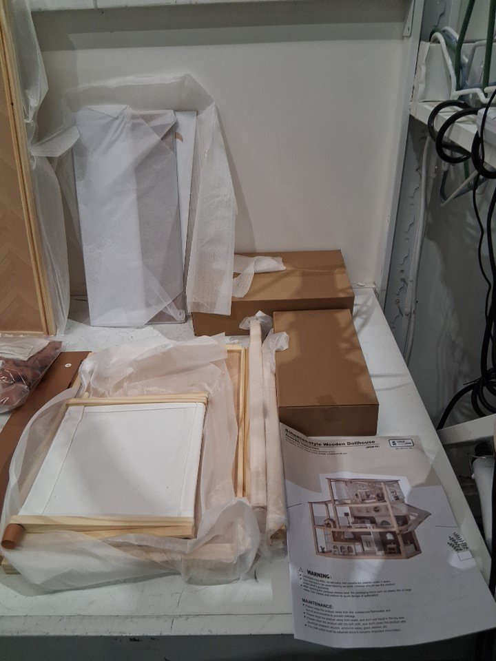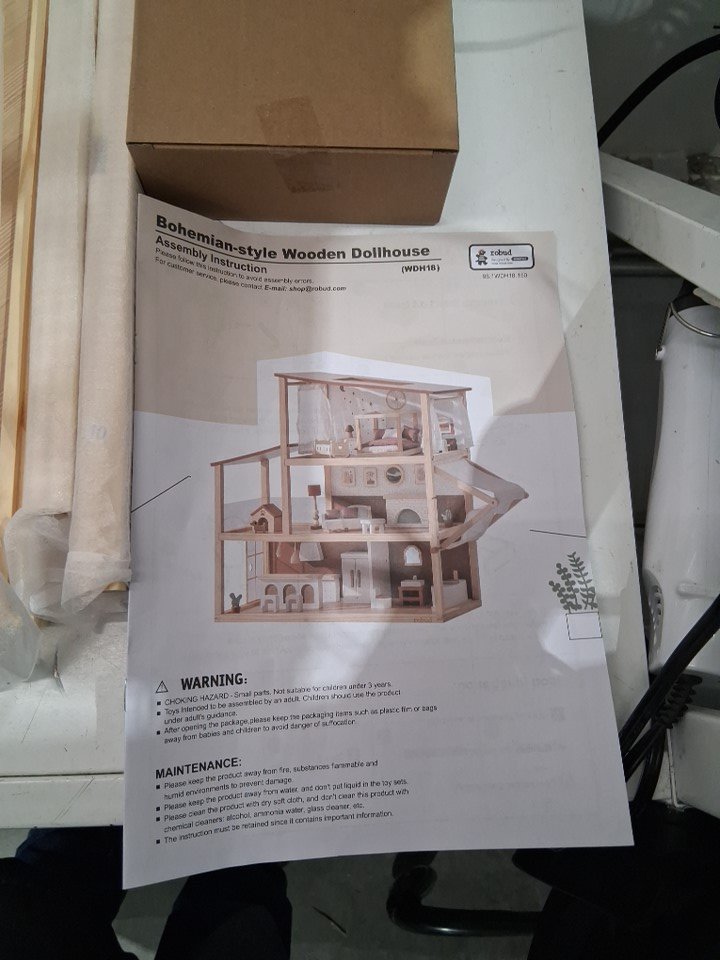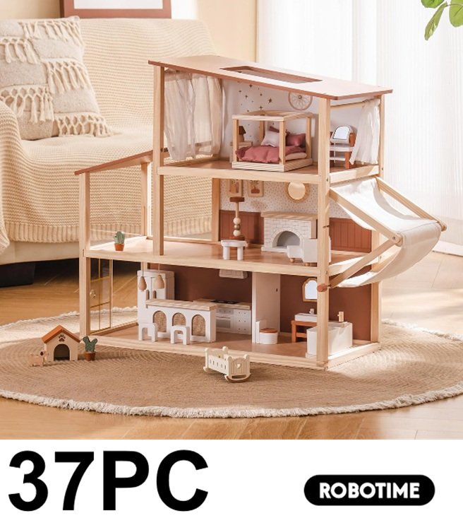 37PC ROBOTIME 3-Story Bohemian Style Doll House WITH Furniture Set & Awning - 1:12 scale - beige (model: ‎RBT-6-WDH18)