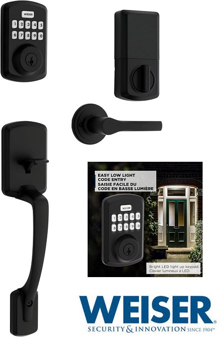 weiser Powerbolt 3 x Henley Door Handle and Keyless Entry Handle set - matte black (model: 9GLA92500-004)