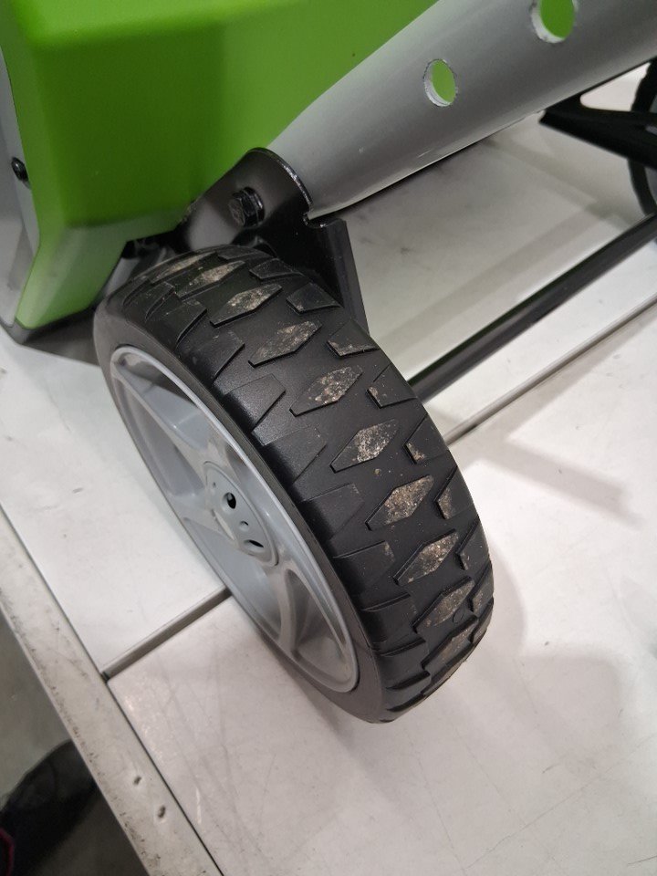 markings on the wheels and inside the machine indicate previous use. tested for power and function.