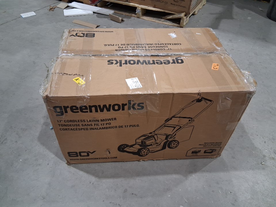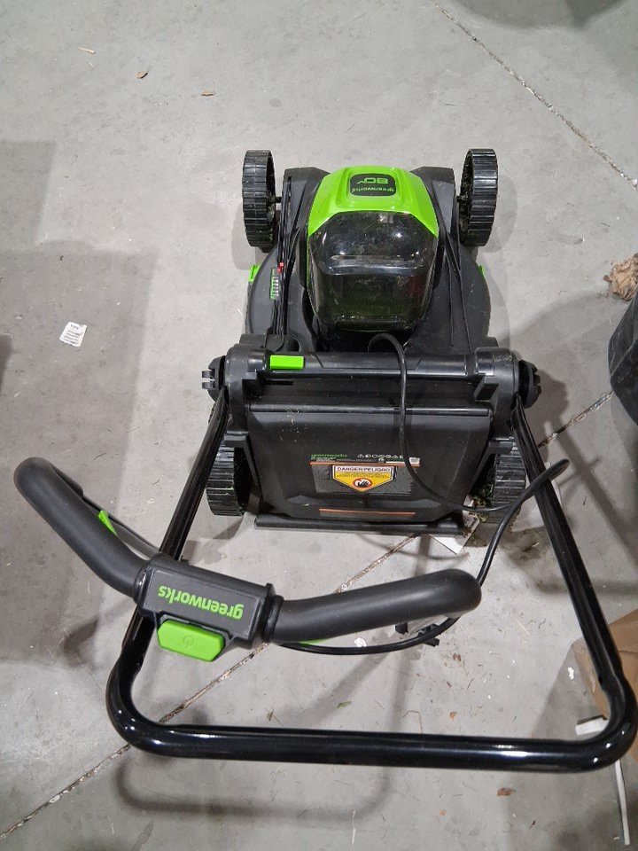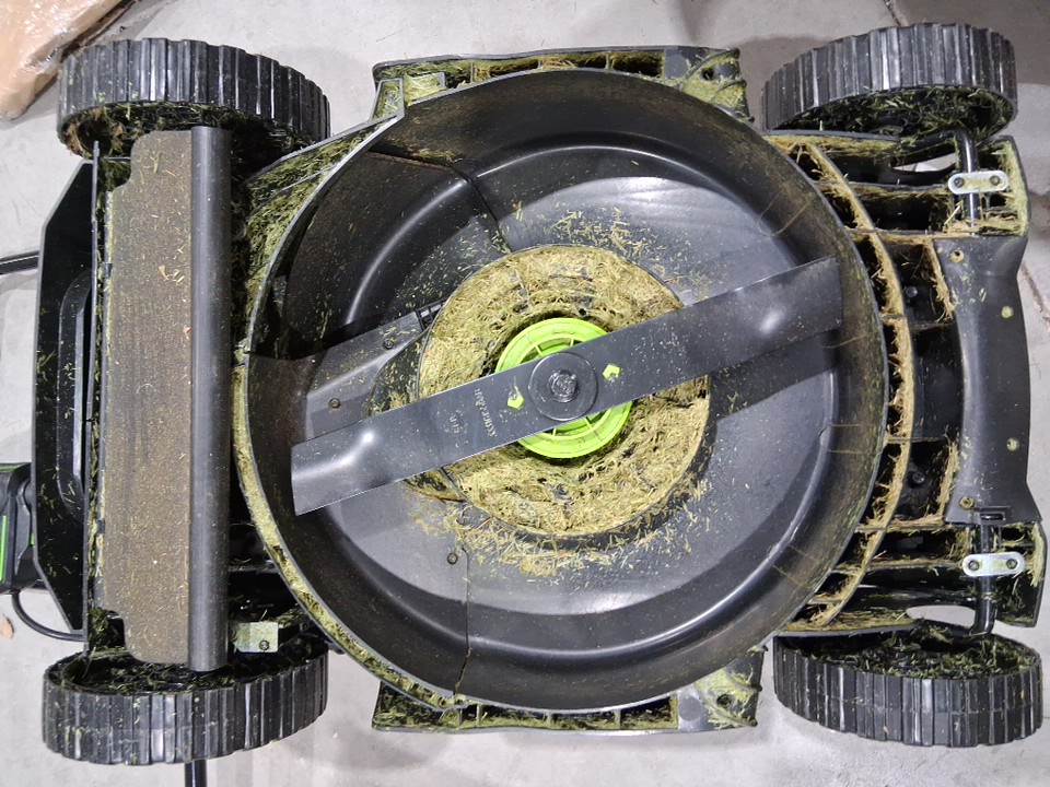 Item has heavy grass across it. Dirt and scuff marks are present across entire product. There is a strong odor of grass. Item has been tested for power and it works. Customer is recommended to fully clean out product before use.