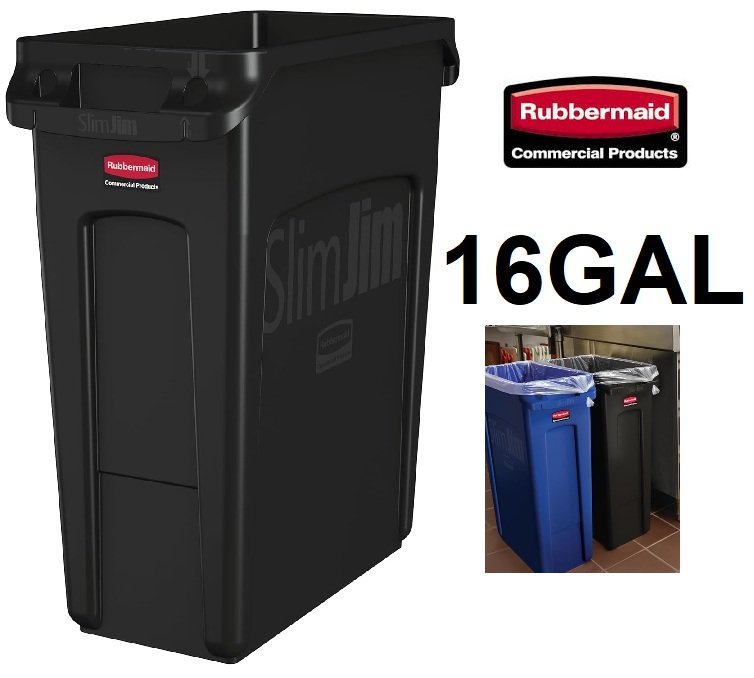 rubbermaid Commercial Vented Slim Jim Trash receptacle - 16gal - black (model:1955959)