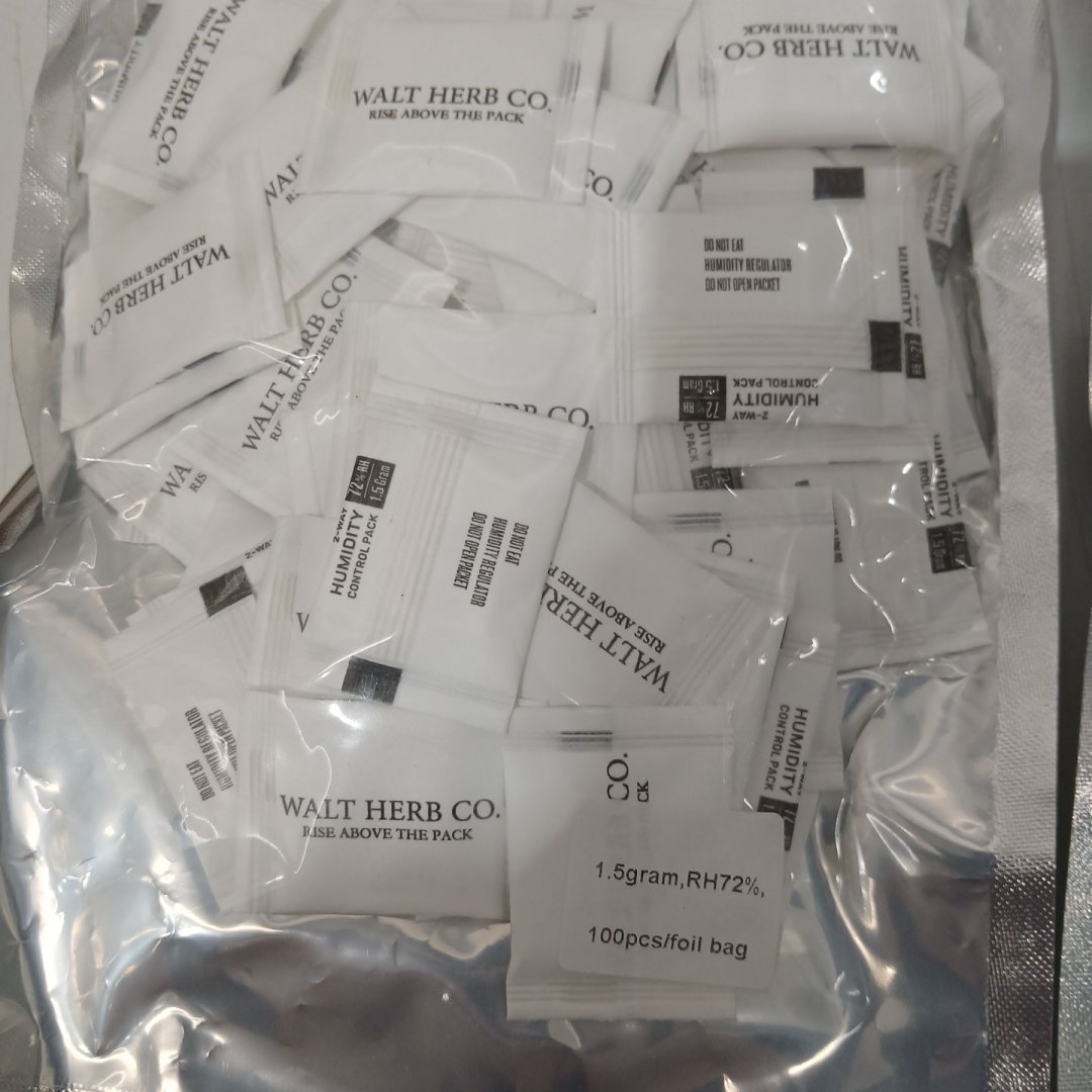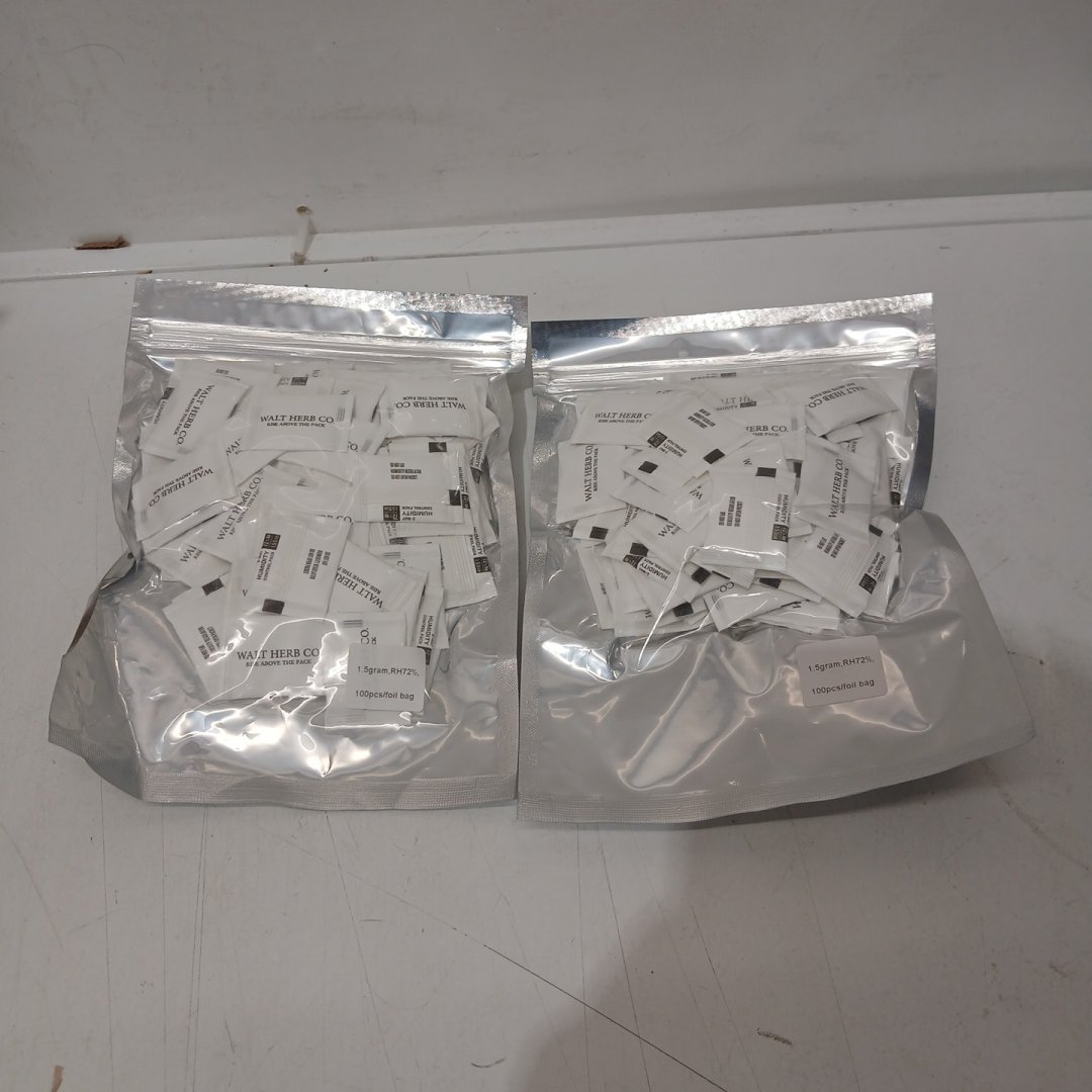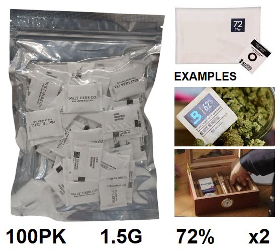 (2) 100PK WALT HERB CO. MOISTURE HUMIDITY CONTROL PACKS FOR CIGARS, MARIJUANA & SPICES (SMALL CONTAINERS 1.5G) RH 72% HUMIDITY - (200 TOTAL)