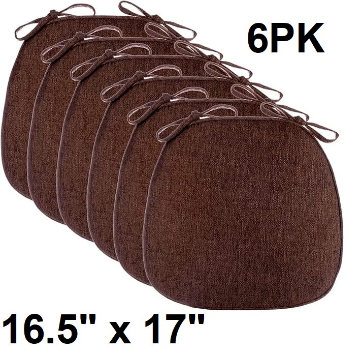 6pk pipoei dinning chair cushions with ties - 16.5" x 17" - brown