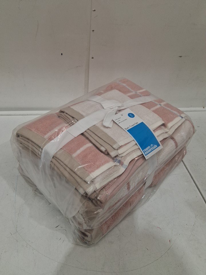 6pc Room Essentials Bath Towel Bundle Set -pink/peach / white striped