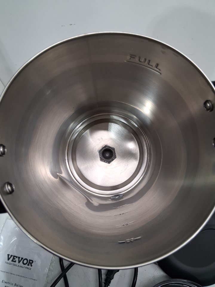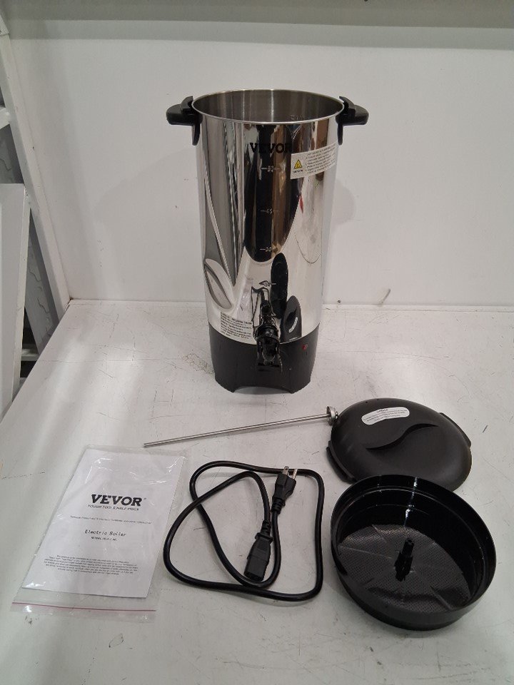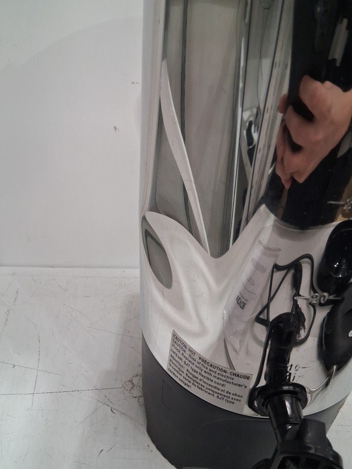 The electric boiler has coffee stains on the inside and some scuff marks on the outside from previous use. *Please note that there is also a dent on the left side of the boiler*. Item was tested for basic power.