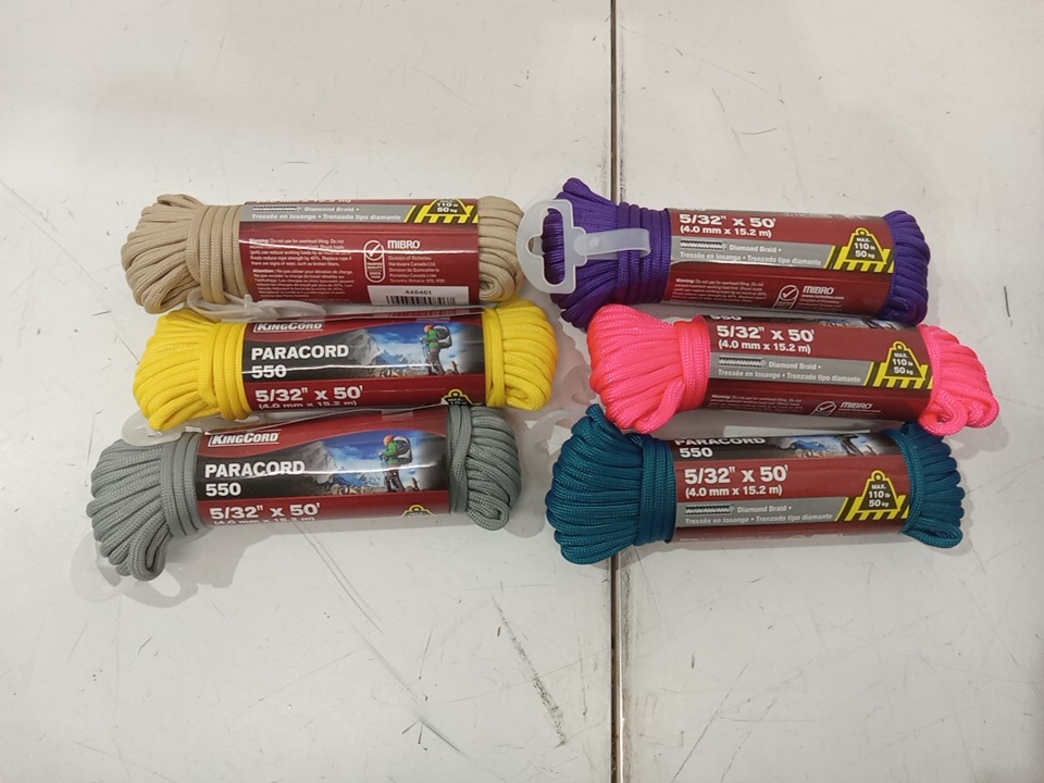 6 MIBRO KINGCORD Paracord 550 Diamond Braid Nylon Rope - 5/32" x 50FT - ASSORTED COLORS