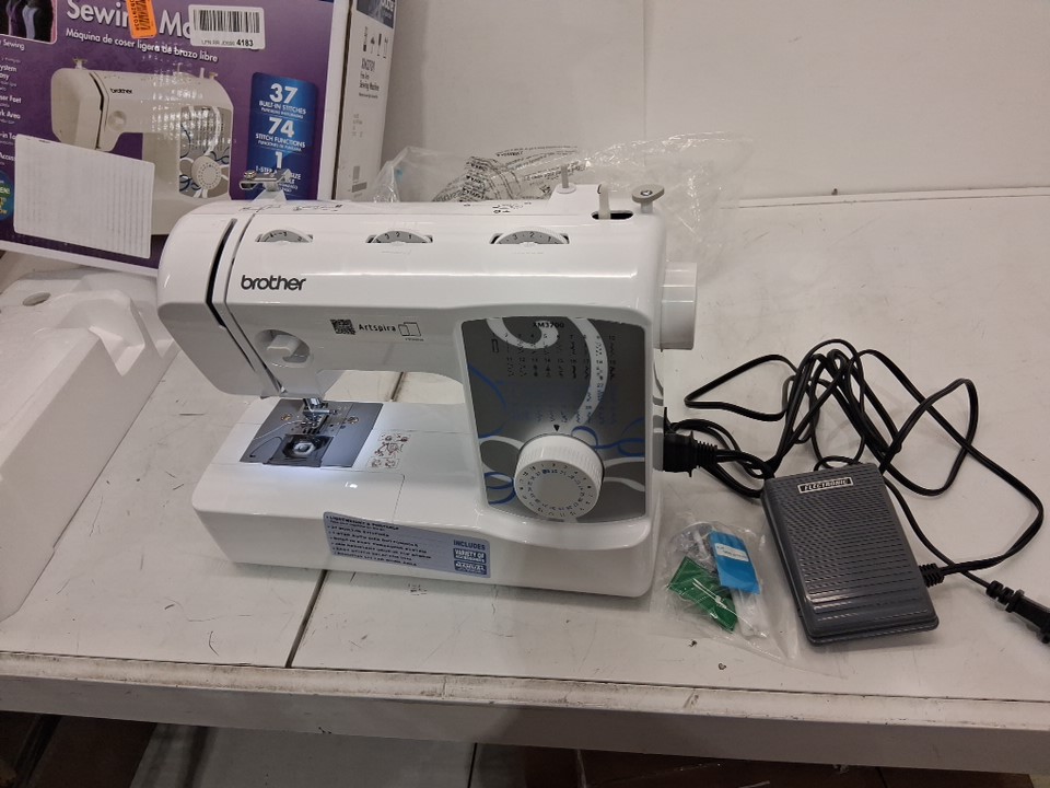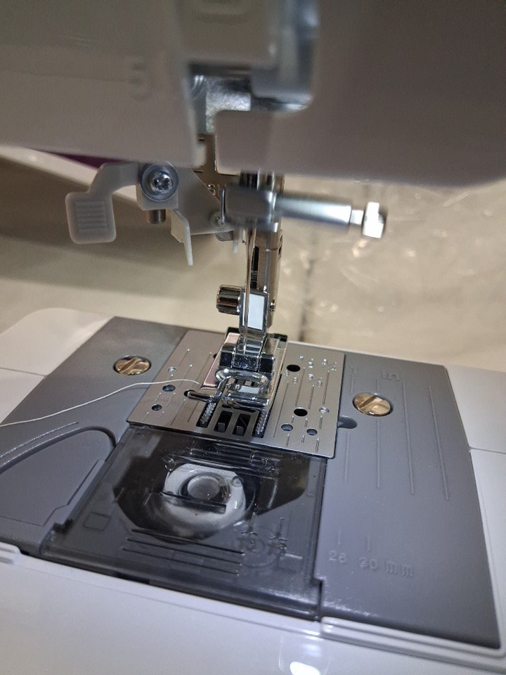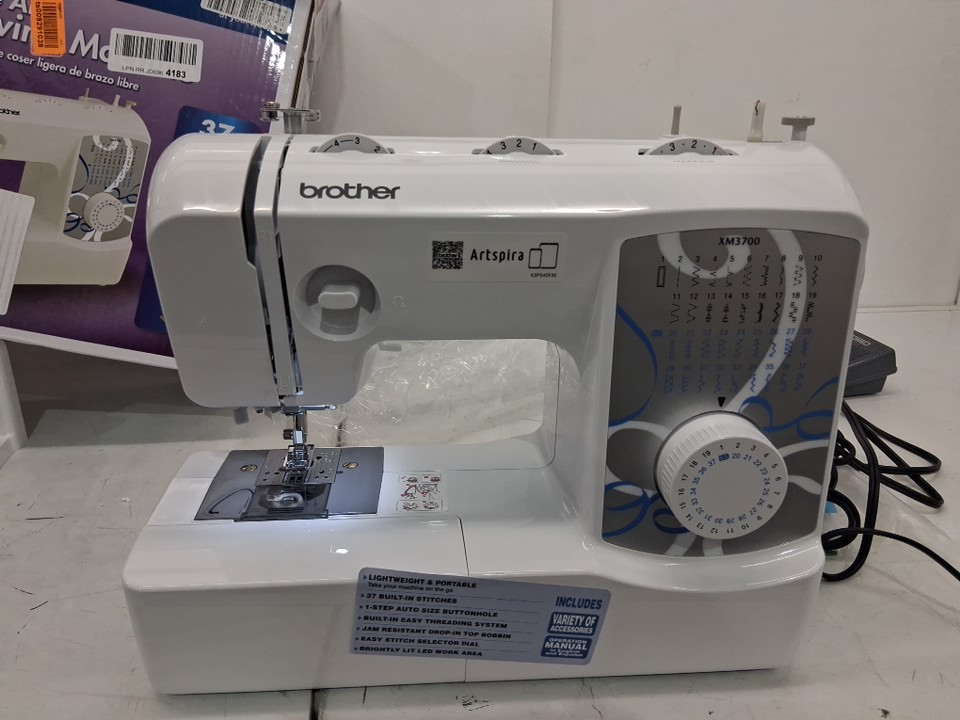 sewing machine has a spool of thread inserted already. Has been tested for power and functionality