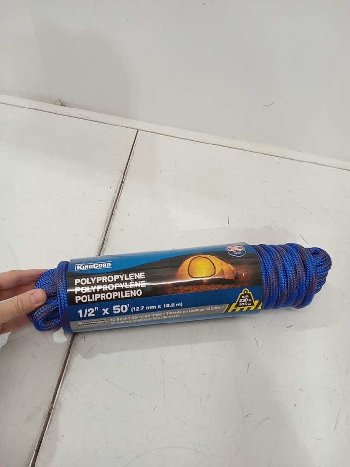 MIBRO KINGCORD Polypropylene 32 STRAND DIAMOND BRAID ROPE - 1/2" x 50ft - BLUE/BROWN