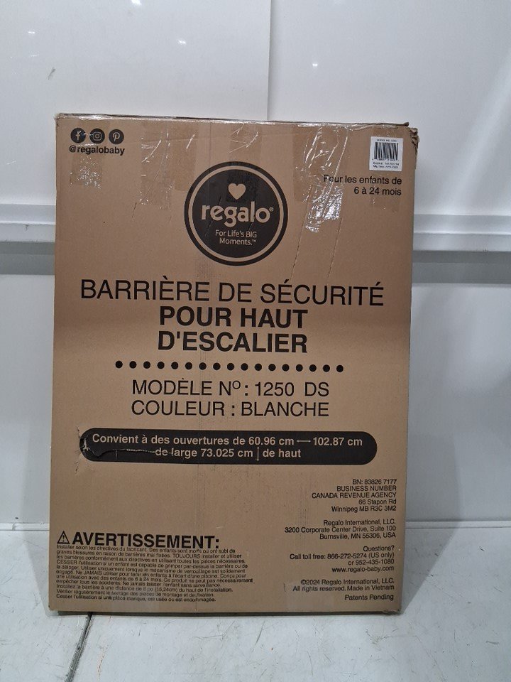 Regalo Extra Wide 2-in-1 Top of Stairway and Hallway Safety Gate with Mounting Kit - 29"x24"-40.5" - White (Model: 1250DS)