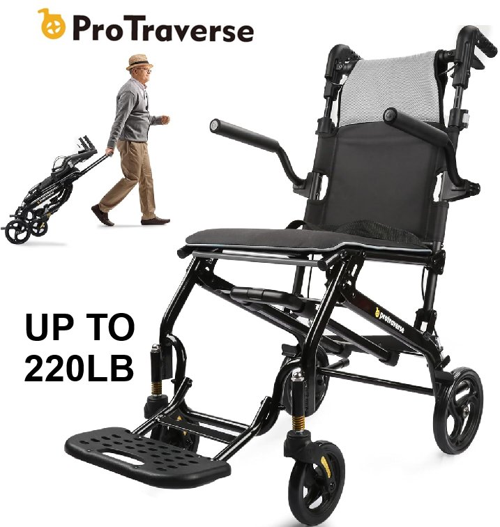 ProTraverse Ultra-Lightweight foldable & Portable Telescopic Handled Wheelchairs - black/Grey - (model: ‎‎P-LTW0519GY-FBA)