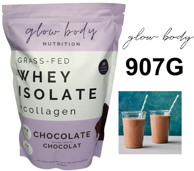 GLOW BODY nutrition grass-fed whey isolate + collagen drink mix- chocolate flavour - 907g