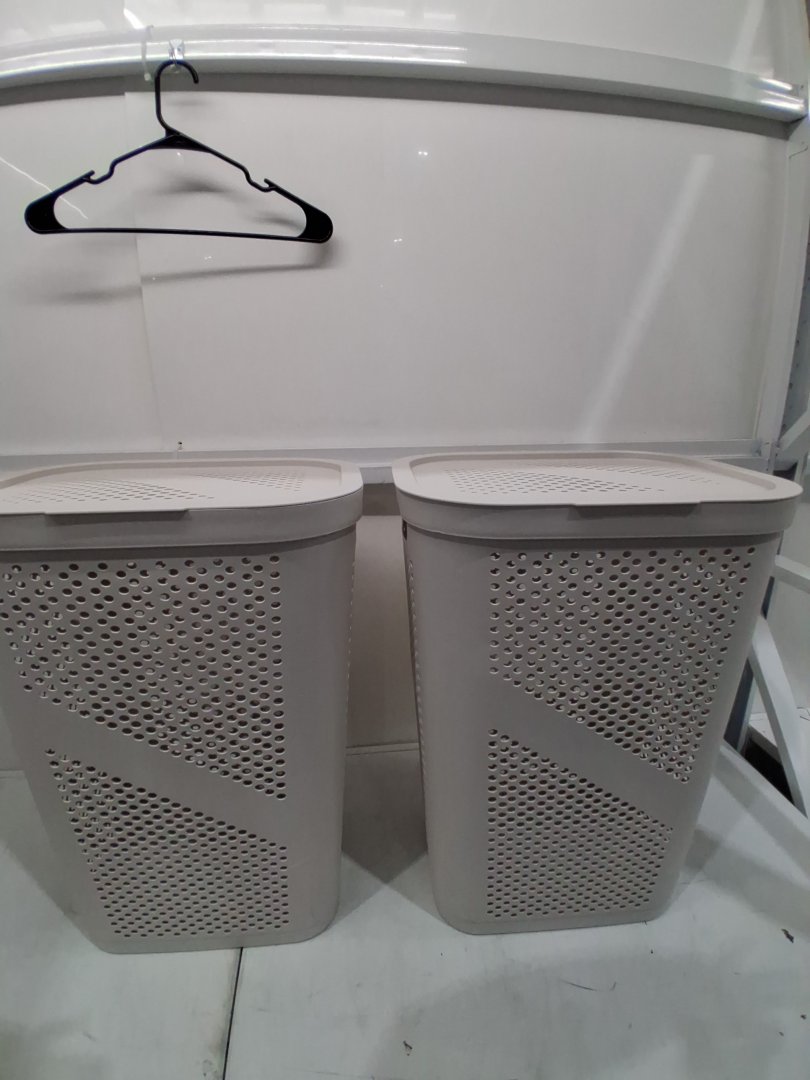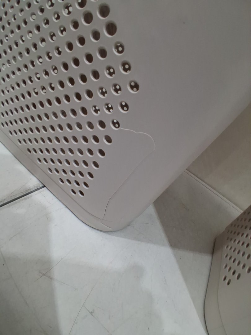 One of the items has a crack at the bottom front side of the bin.
