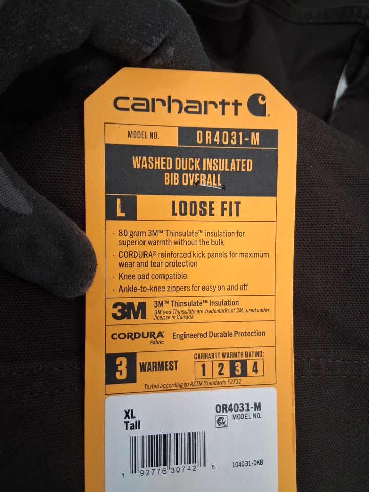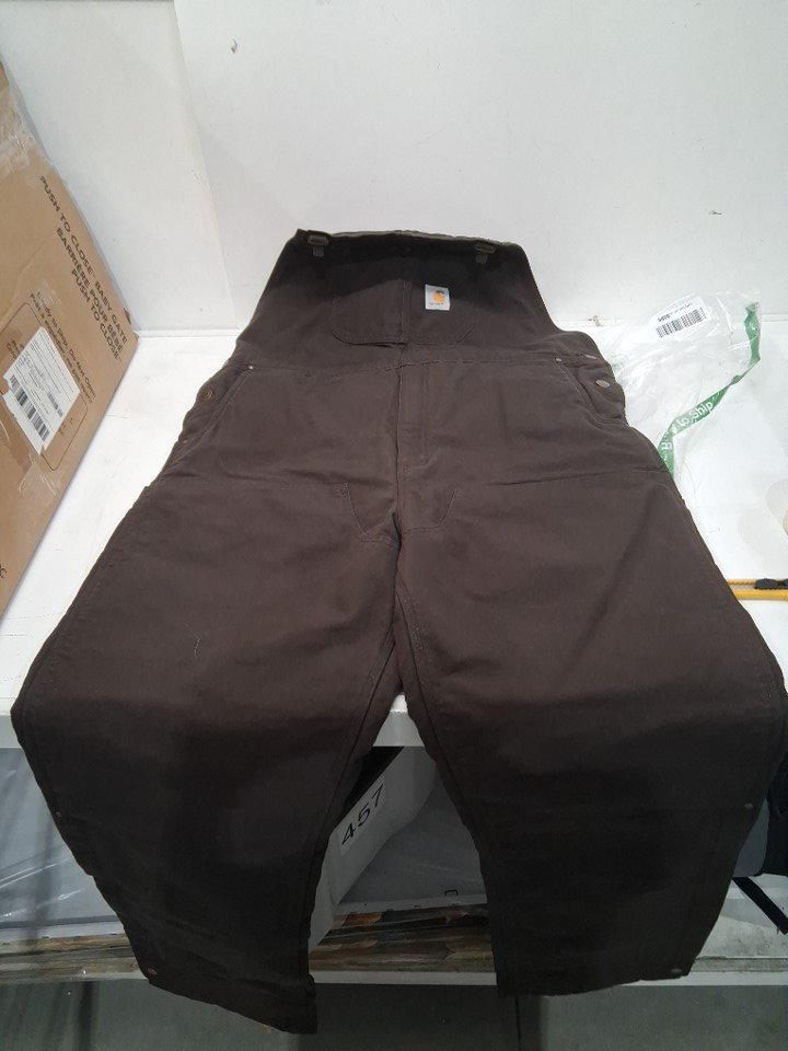 men's CARHARTT RELAXED FIT WASHED DUCK INSULATED BIB OVERALLS - extra large tall - dark brown (STYLE: OR4031-M)