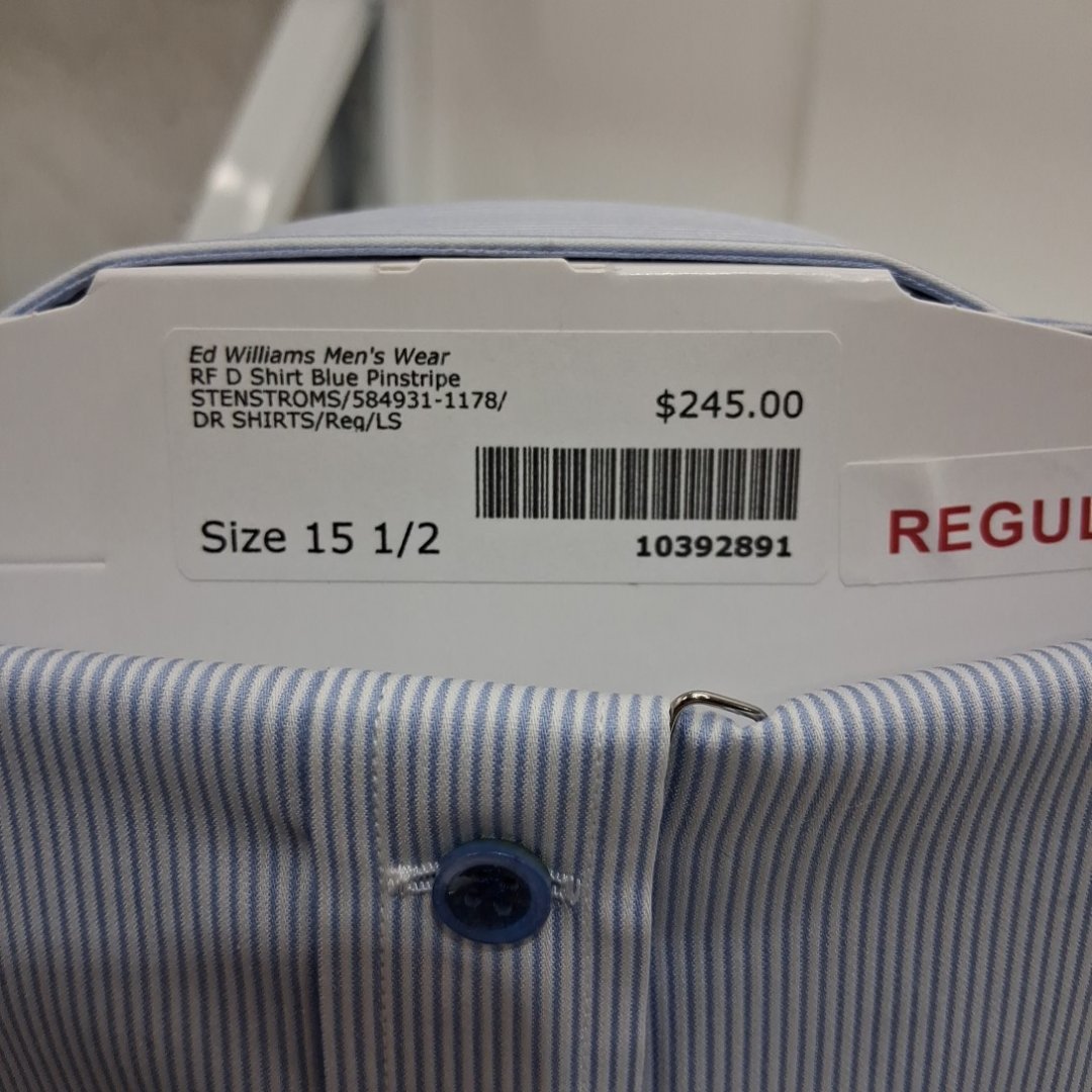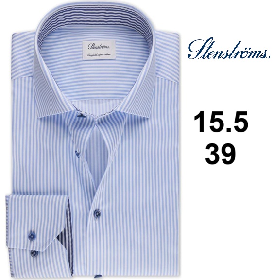 men's ED WILLIAMS Stenströms classic fit long sleeve button up dress shirt - 15.5" NECK/39 - blue stripe (10392891)