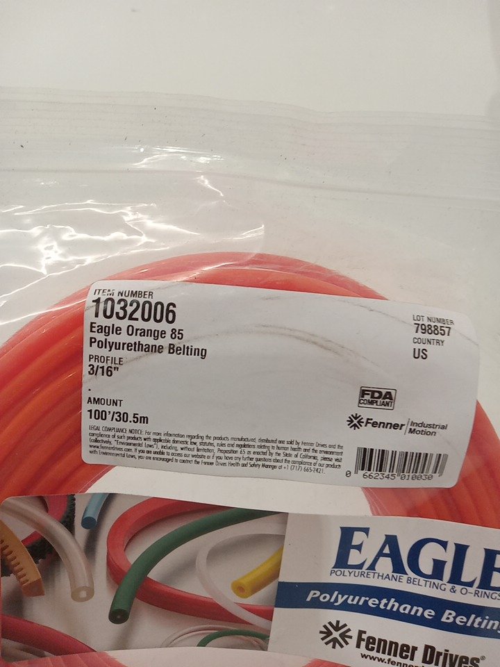EAGLE BELTING ROUND POLYURETHANE BELT - 3/16"X100FT - ORANGE (MODEL:1032006)