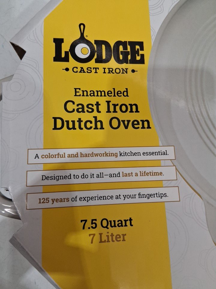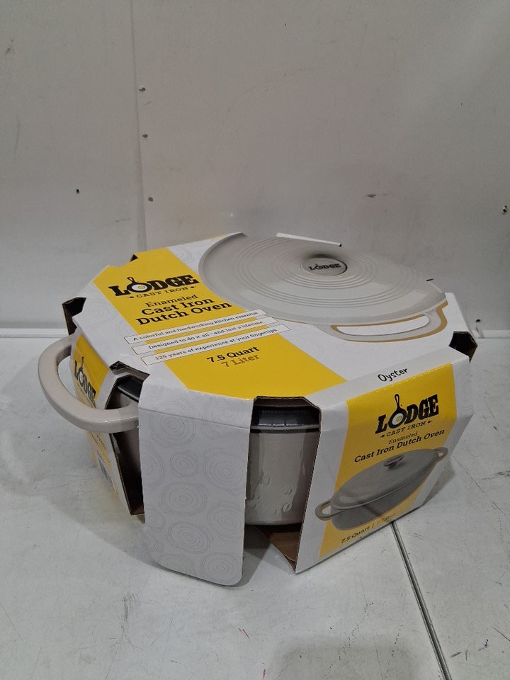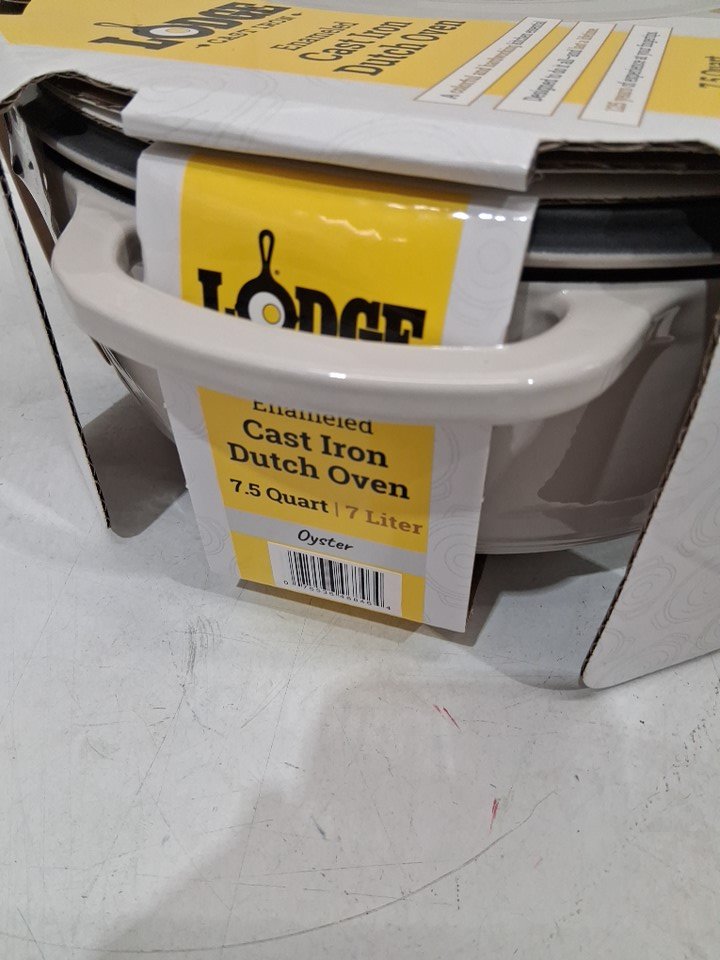 LODGE CAST IRON DUTCH OVEN W/ PORCELAIN-ENAMEL FINISH - 7.5QT - OYSTER WHITE (MODEL: EC7D13)