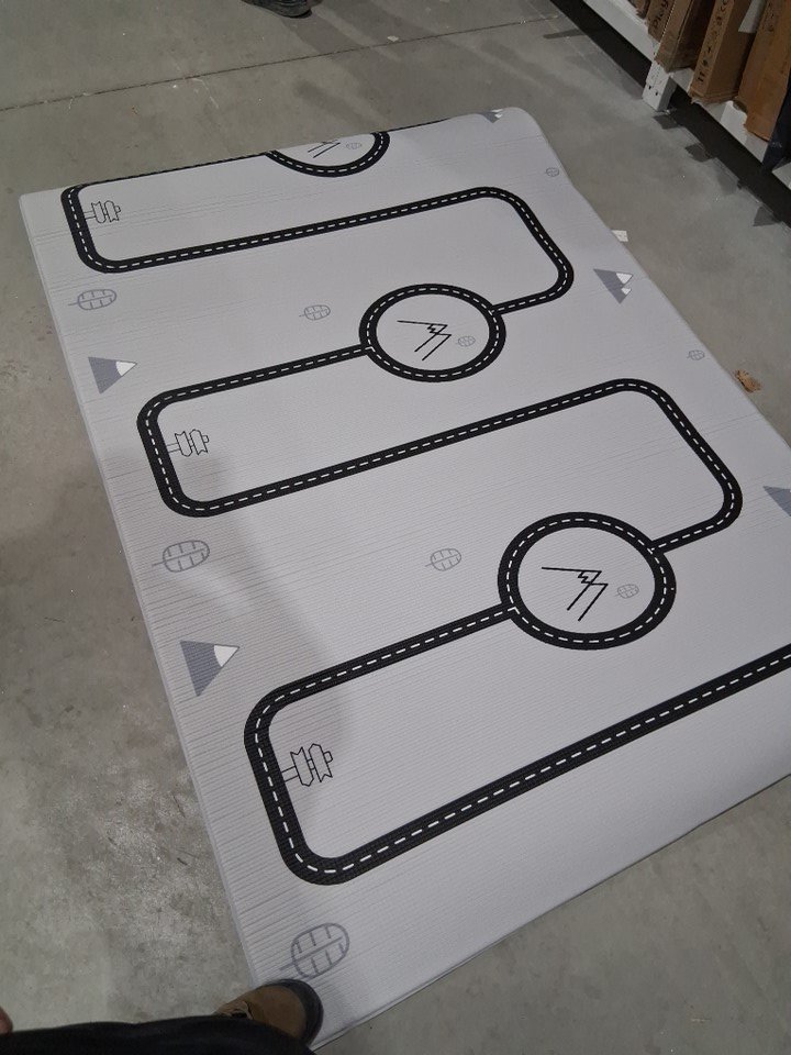 LITTLE BOT OFIE MAT SOFT DURABLE NON-TOXIC BABY PLAY MAT - LARGE 6.5FT X 4.5FT - COUNTRY ROAD & TRIANGLE - (MODEL: LB132)