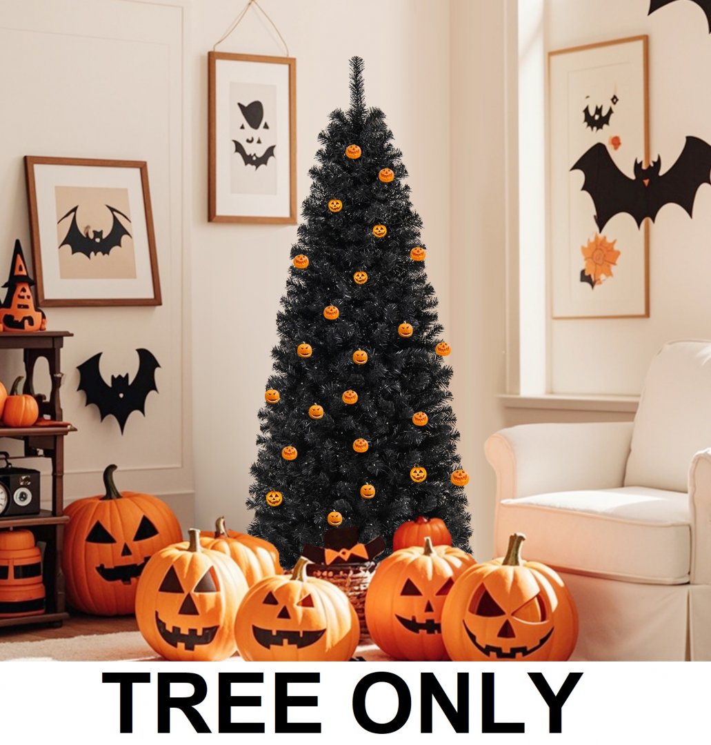 Costway Artificial Halloween/CHRISTMAS Tree with 618 Branch Tips 280 Warm White LED - 6 FT - BLACK (MODEL: cm25006us)
