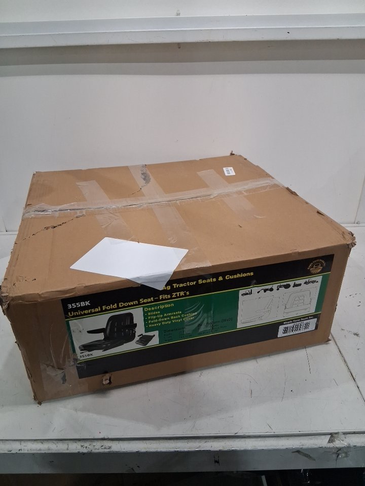 Maple Farm Seats Universal Fit Folding Forklift Lawn Tractor Seat With Retractable Seatbelt - 19" x 18" x 21.5" - Black (Model: MFS-355BK)