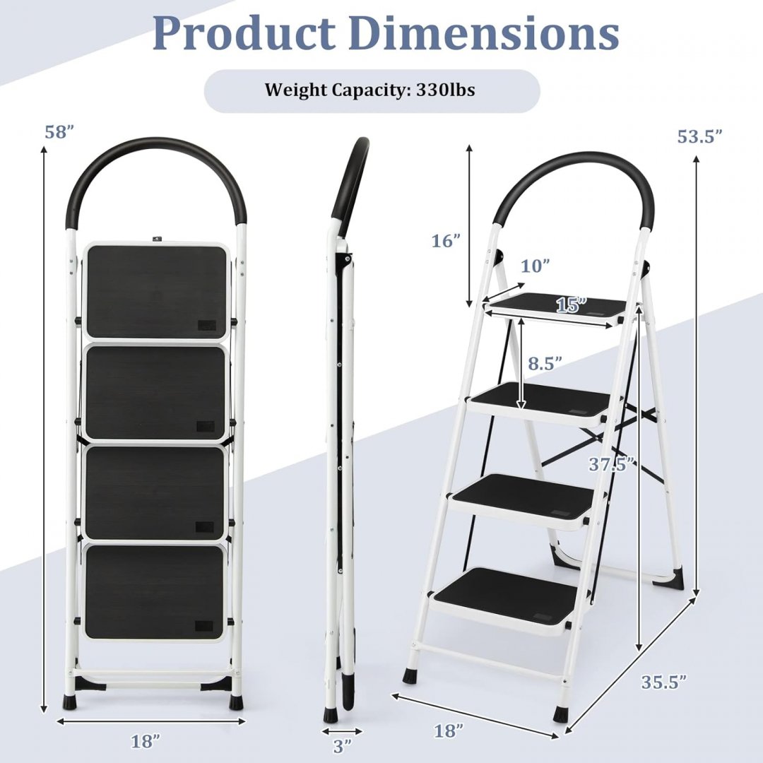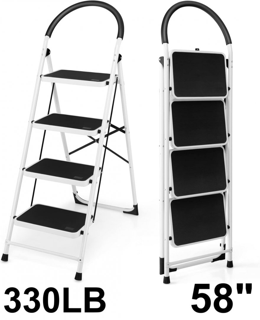 goplus 4-step folding ladder/step stool - 58", 330lb limit - black/white - (model: tl35649)