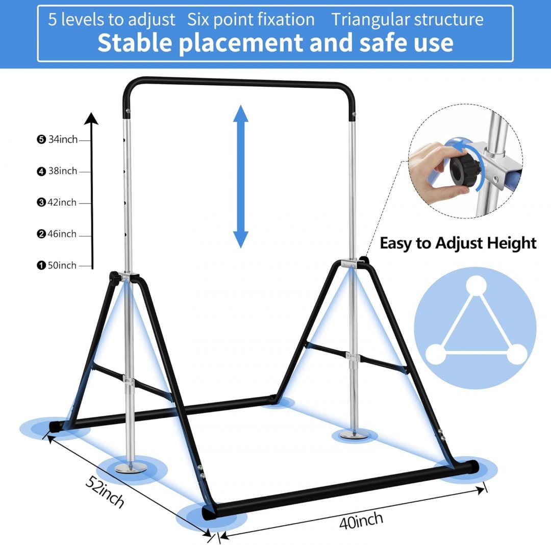 BANGTONG&LI GYMNASTICS BAR FOR KIDS HEIGHT ADJUSTABLE HORIZONTAL KIP BAR - BLACK (MODEL: BT-CHILD)