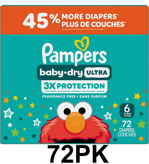 72PK Pampers Baby Dry Ultra disposable Diapers - Size 6 - 12LBS - 18LBS - Sesame Street