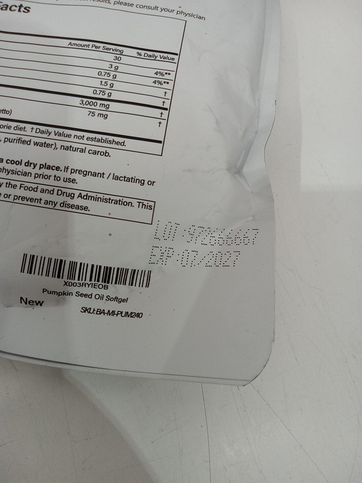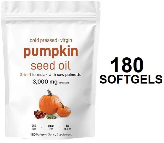 (180 Gels) Cold Pressed Virgin Pumpkin Seed Oil Dietary Supplement - 3000mg