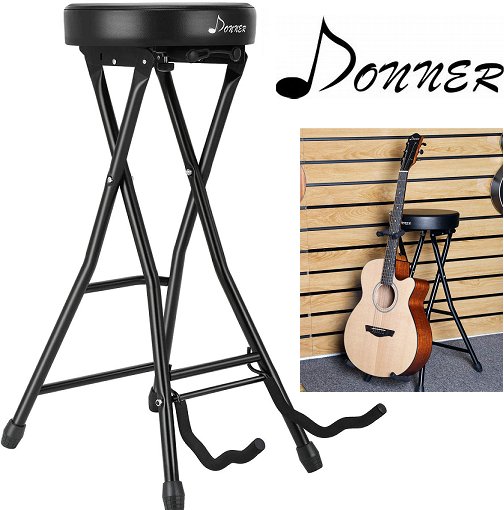 DONNER GUITARIST STOOL WITH FOOTREST FOLDABLE - BLACK
