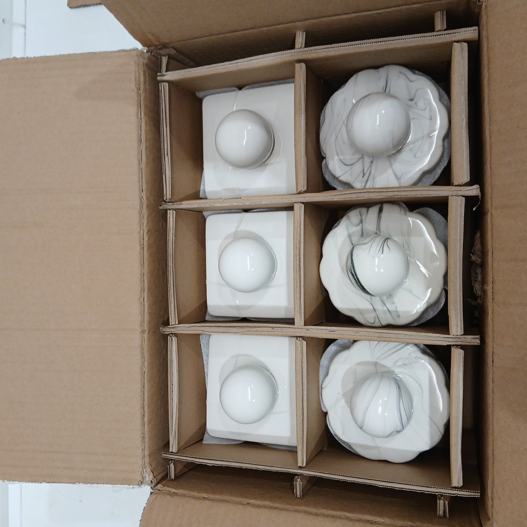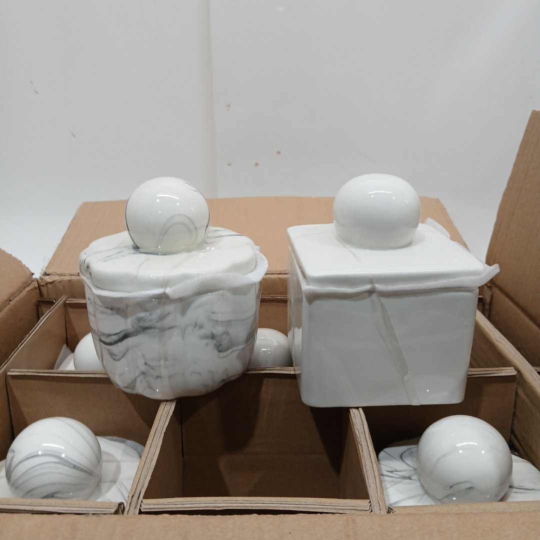 6PC Bullseye Playground Decorative Canisters (3 of each) - 4" x 3" - White/Marble & Solid Cream