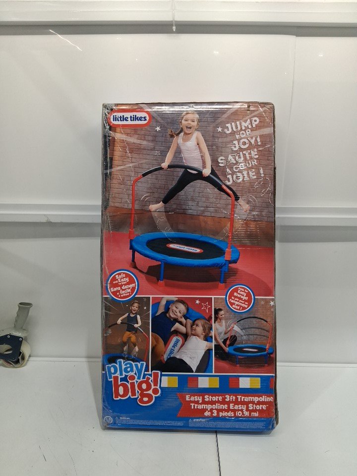 LITTLE TIKES Play Big EASY-STORE KIDS TRAMPOLINE - 3FT - MAX WEIGHT 55LBS - BLUE/MULTICOLOUR - (MODEL: 642265PC)