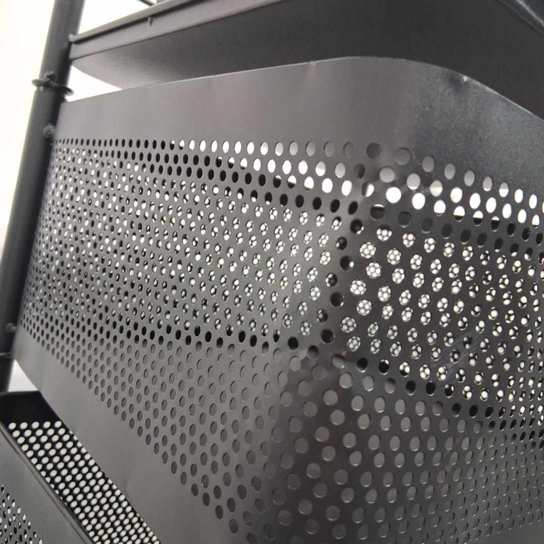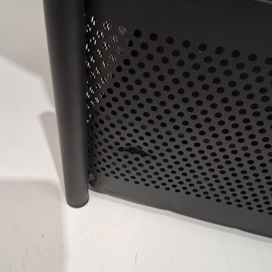 Please note that there are several small dents on the shelves and a small hole on the side of the bottom shelf. (see photos)