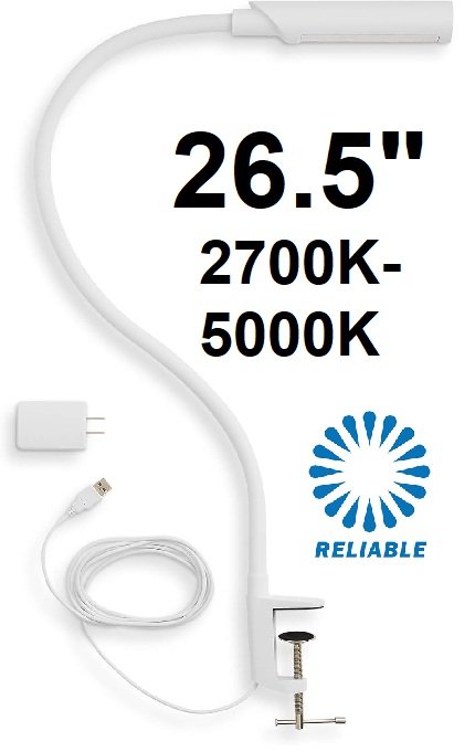 reliable uberlight flex portable led gooseneck desk task light with clamp - 26.5"/2700k-5000k - white (model: 3100tl)