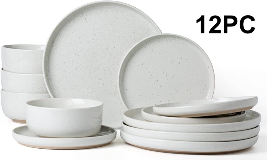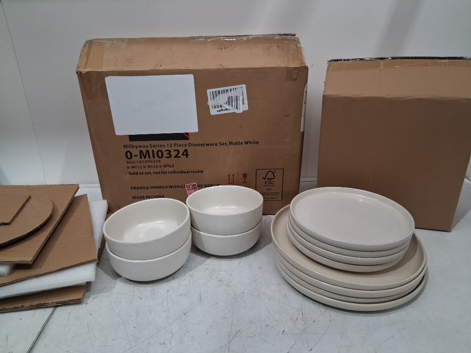 12pc richmount milkyway series dinnerware plates and bowl set for 4 - white (model: 0-MI0324)