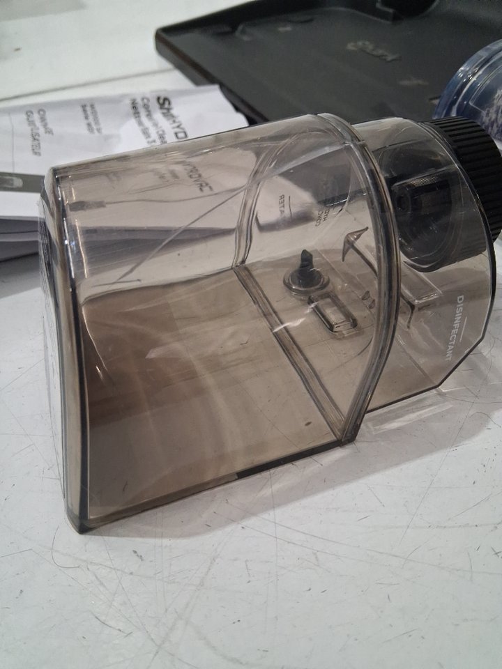 Product is missing cleaning solution. Slight dirt from pervious light use (see photos). Tested for power.