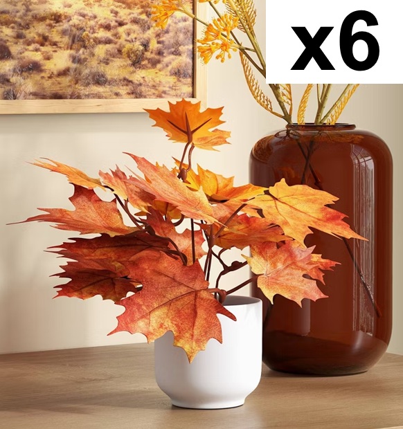 6 Room Essentials Maple Leaf Mini Arrangements - 10" - White/Orange (Model: 065-07-2875)