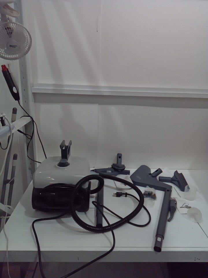 tested for power. appears to have some stains on the top of the machine and on one of the attachment can be cleaned (see photo)