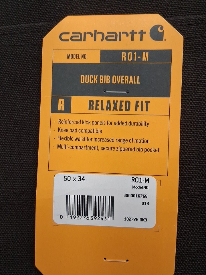 MENS CARHARTT RELAXED FIT DUCK BIB OVERALLS - 50w 34l - dark brown (STYLE: R01-M)