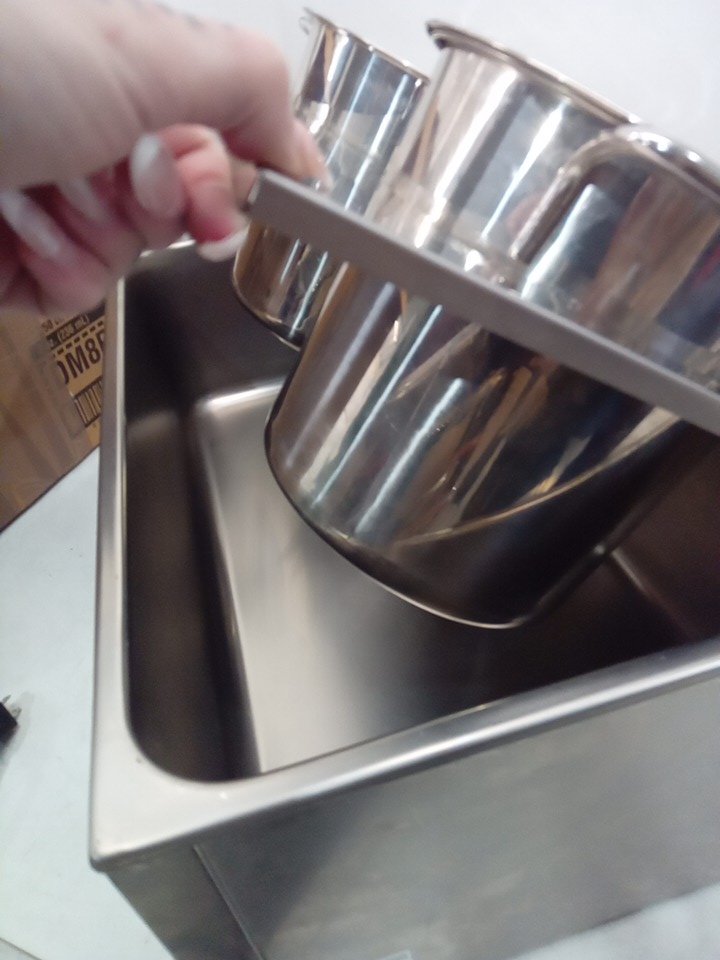 missing the spoons. there is minor staining and grease marks on the item indicating previous use, see photos please.