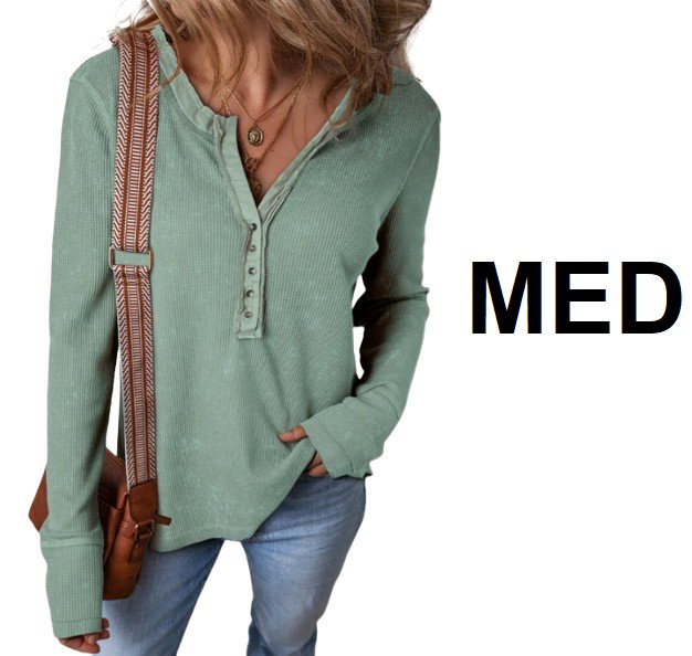 WOMEN'S acid washed waffle knit long sleeve button down shirt - MEDIUM - smoke green