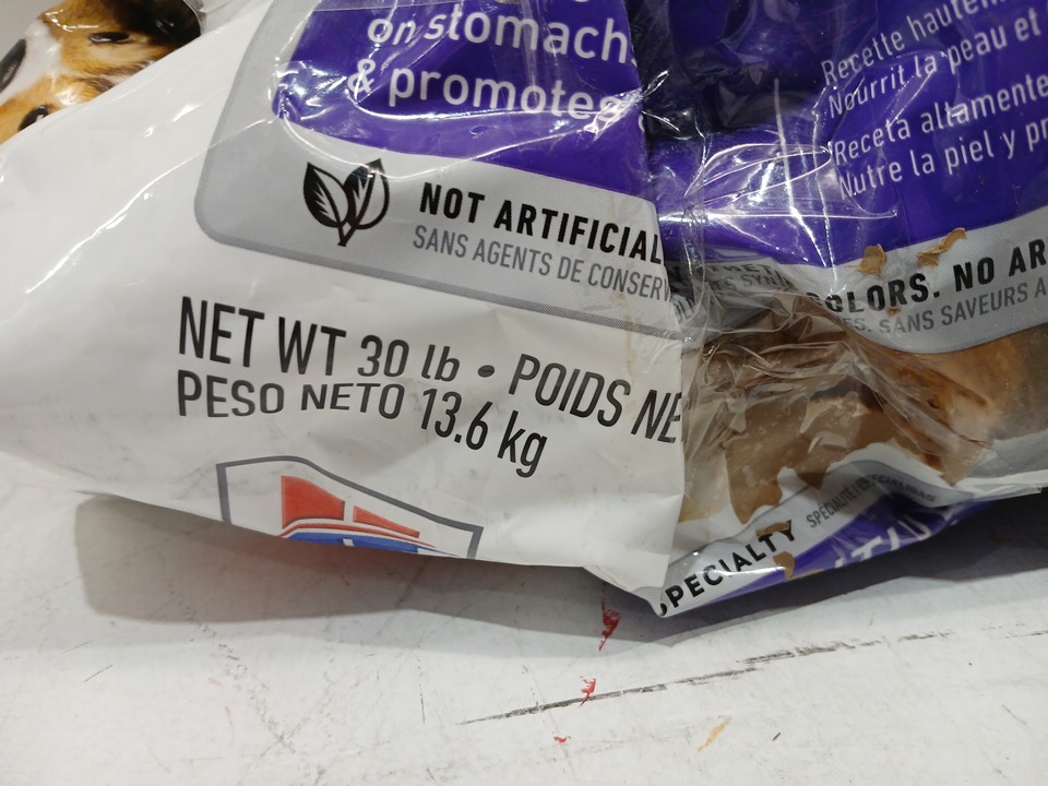 the bag is still sealed, however due to a hole in the front (possibly from shipping), approximately 5lbs of food is missing.