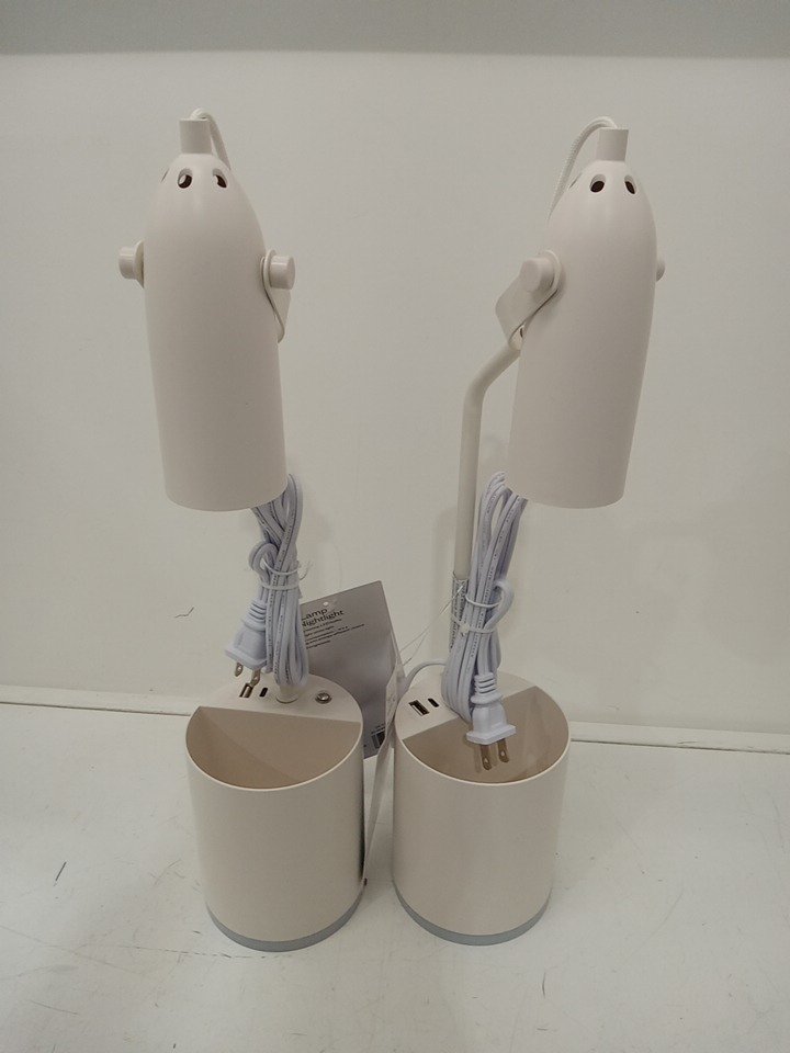 2 Room Essentials dimmable task Novelty Table Lamp with desk Organizer - white
