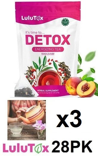 3 (28PK) LULUTOX Detox Tea for Digestive Health - 2.24oz (28 servings) - peach flavour